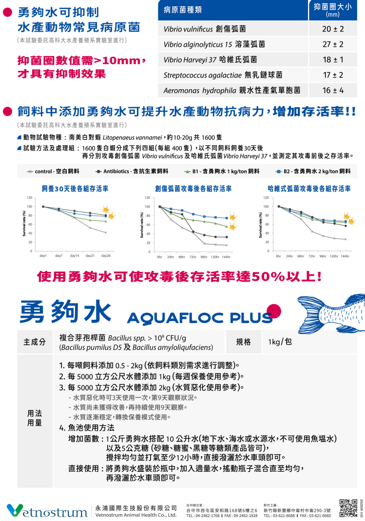 每 5000 立方公尺水體添加 2kg (水質惡化使用參考)o