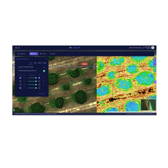 geoccp乃經緯航太科技為解決無人機/uav影像計算及後續分析需求,整合遙測製圖、工程監測及農業判識等技術,開發之全雲端計算環境。使用者上傳無人機之拍攝影像,即可利用本平台完成影像計算、拼接、套疊、結果展示及分析應用。平台可串接其他的數據分析與人工智慧模組,模組的分析成果可進一步展現、套疊於影像上。