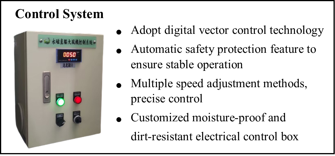 1. utilizes permanent magnet brushless motor for easy maintenance.